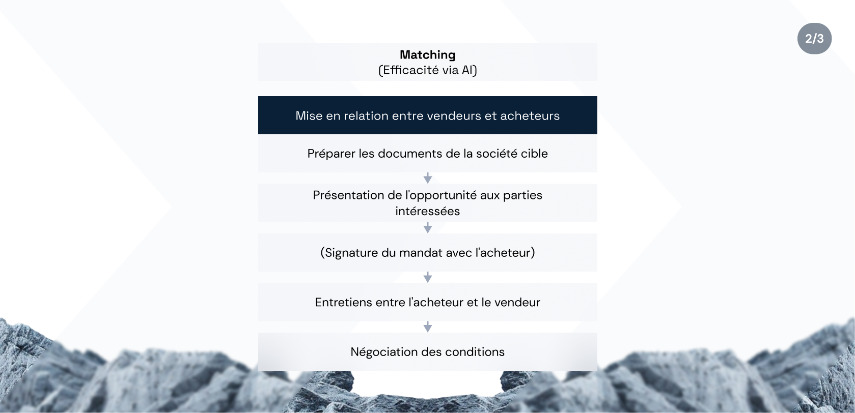 Nous nous assurons que les vendeurs et les acheteurs trouvent la cible idéale pour leurs objectifs de fusion et acquisition et leurs futures synergies.