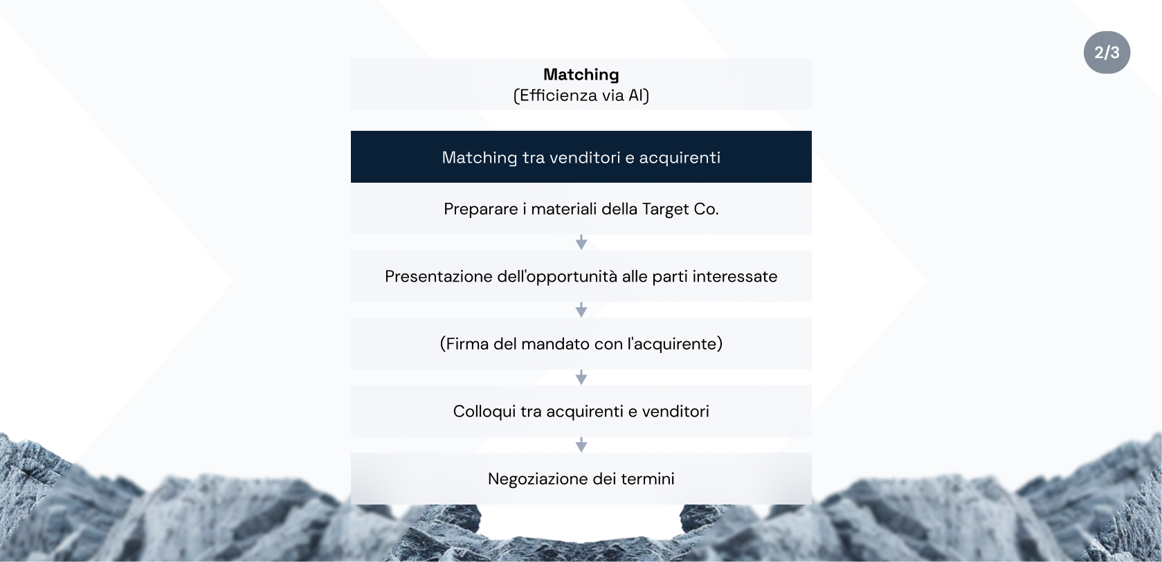 Analizziamo meticolosamente i dati storici di M&A dal nostro ampio database, costruendo continuamente un elenco di potenziali acquirenti. Questo approccio basato sui dati ci consente di individuare le aziende con un'alta probabilità di successo e una rapida chiusura dell'accordo.